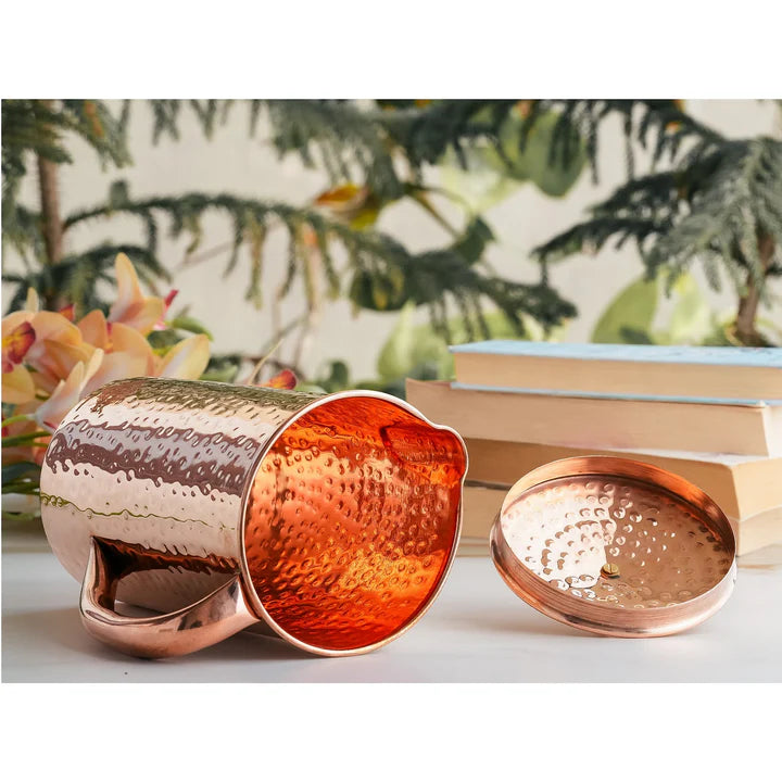 Experience the purity of tradition with our 2L Hammered Pure Copper Jug. Handcrafted, BPA-free, and designed to promote health benefits while enhancing water taste—only at Purely Copper.